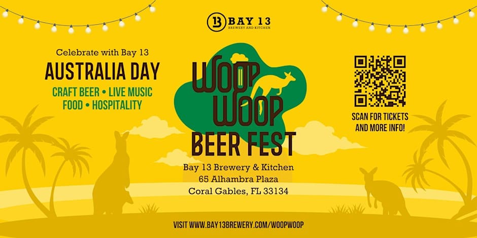 My first Food Event of the Week is technically a beer event, but I had to be flexible here because I heard people had a blast at this last year. Besides, there's probably some food in there somewhere! 30+ breweries take over the patio outside Bay 13 Brewery on Alhambra Plaza in Coral Gables, with local favorites Sueñalo headlining the live music, and an "Aussie Cultural Tent" to show us how much happier we'd be living Down Under.